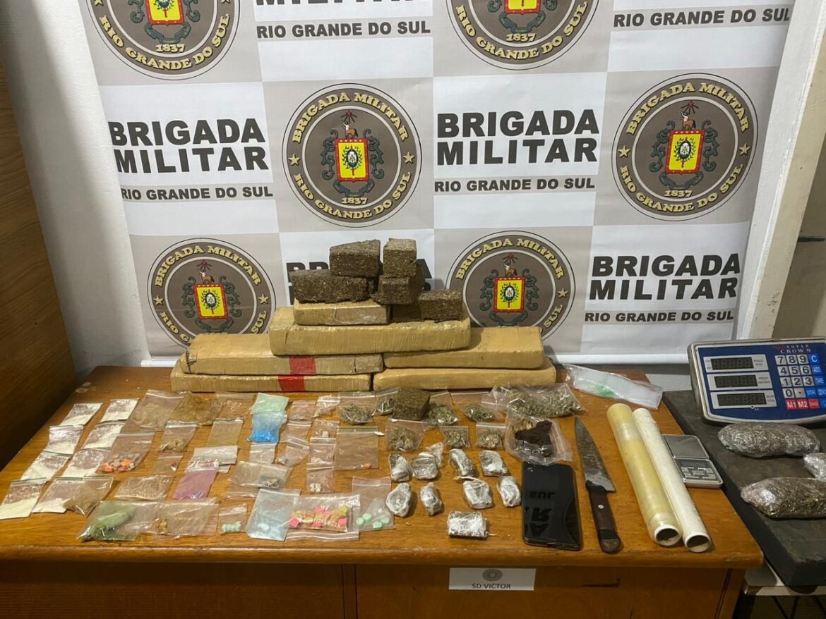 A primeira prisão aconteceu no sábado, 22, à noite, após a Brigada Militar receber denúncias de que um homem estaria fazendo tele entrega de drogas e com ele havia mais entorpecentes armazenados para venda. O veículo foi localizado e com o condutor os policiais apreenderam 25 porções de maconha, balança de precisão, celular e R$ 12.