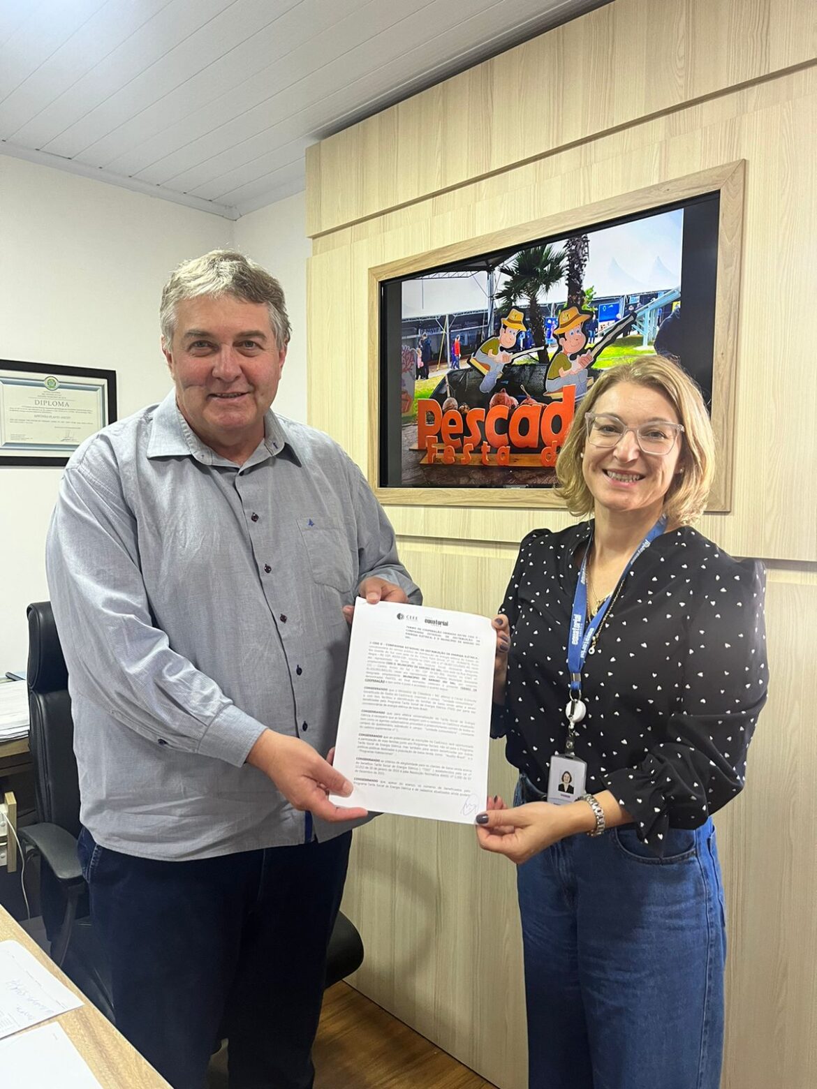 Na manhã desta quinta-feira, dia 18, o prefeito de Arroio do Sal, Affonso Flávio Angst (Bolão) recebeu Ivanise Pilar Brum, Consultora da Comercial CEEE, representante do Grupo Equatorial. No encontro, o prefeito assinou o contrato que amplia o programa Tarifa Social de Energia Elétrica (TSEE) ao Município.