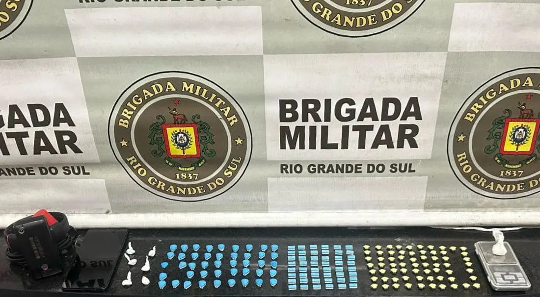 Em sua mochila foram encontrados 157 comprimidos de ecstasy, sete buchas de cocaína e uma balança de precisão.