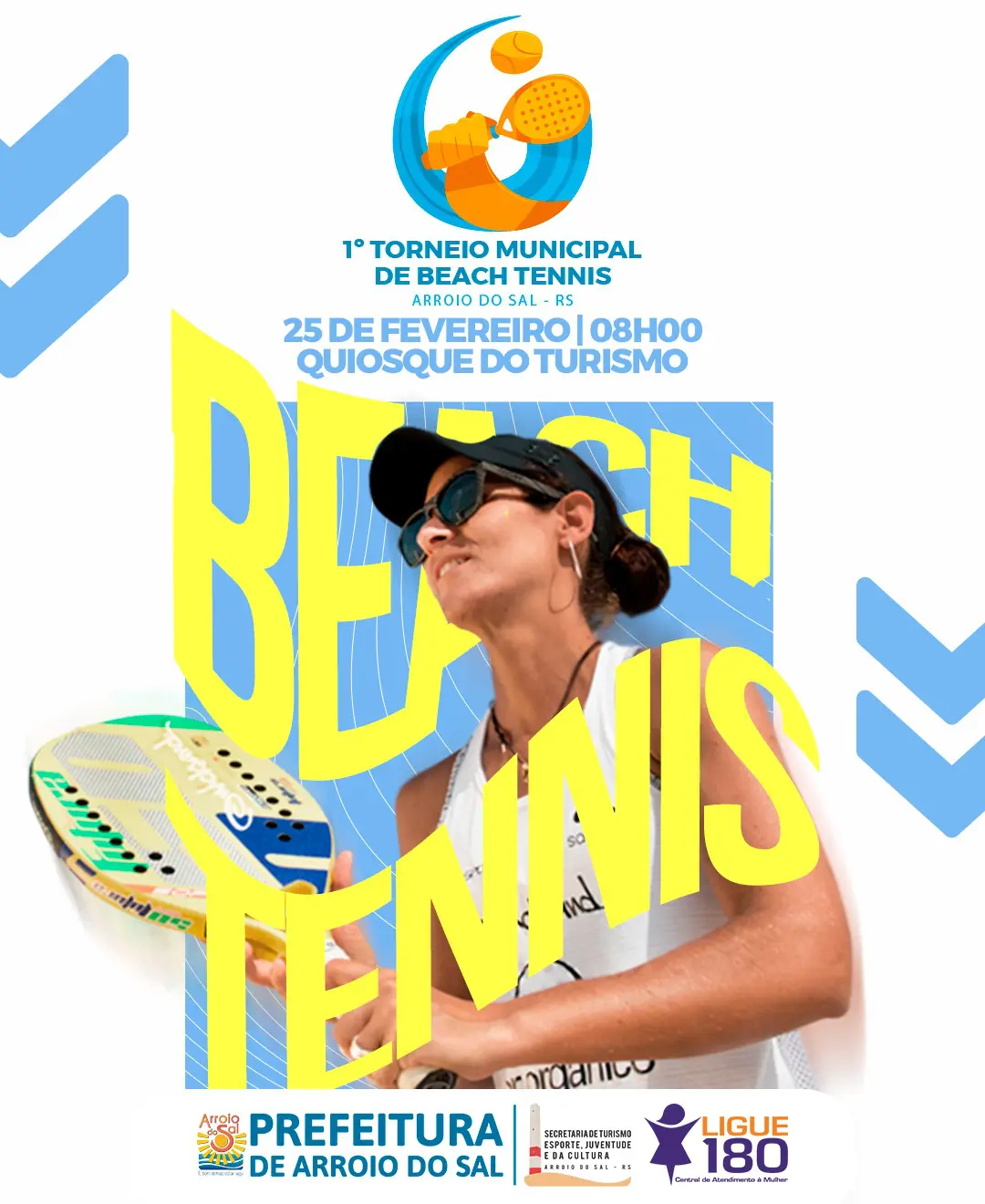 No próximo domingo, 25 de fevereiro, acontecerá em Arroio do Sal o 1º torneio municipal de Beach Tennis. O evento acontecerá a partir das 8h no quiosque do turismo. As inscrições são gratuitas e podem ser feitas pelo telefone 51 9 9902 2159, com Moisés Araújo.