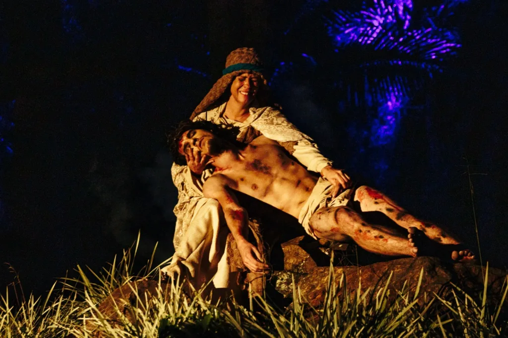 Tradicionalmente, a encenação inicia aos pés do Morro da Borússia, seguindo em um cortejo religioso de oração e reflexão até o topo do morro na Capela de Santa Rita, reunindo fiéis e apreciadores da arte e da religiosidade, encenado e dirigido pelos artistas do Grupo Teatral 1º A.T.O. Em “Manhã em Jerusalém”, há a arte, a história mais conhecida do mundo, o arco de Jesus Cristo com seus ensinamentos de amor e caridade e há a fé como uma bússola guiando o povo rumo ao amor e a paz.