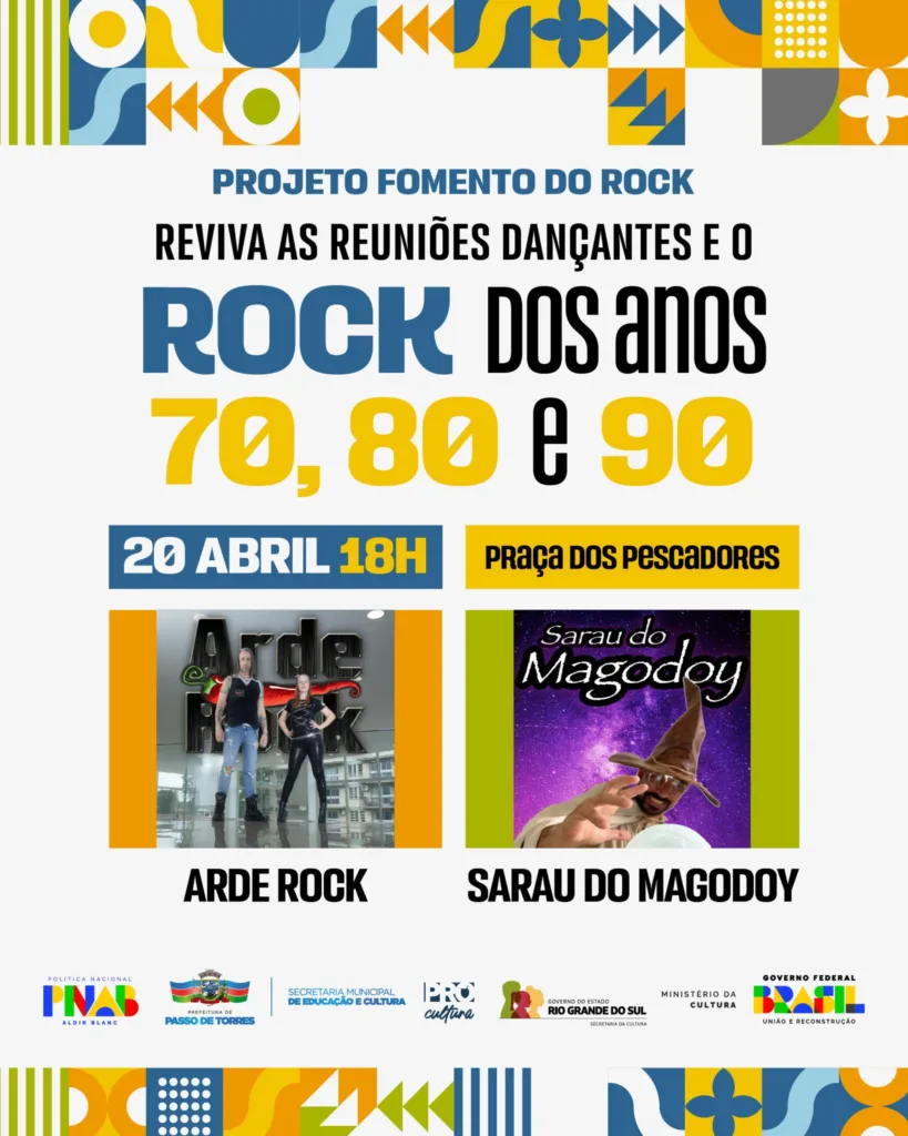 A Prefeitura de Passo de Torres, por meio da Secretaria Municipal de Educação e Cultura, convida a comunidade para uma verdadeira viagem no tempo com a retomada das inesquecíveis reuniões dançantes. O evento “Reviva o Rock dos anos 70, 80 e 90” acontece neste domingo, 20 de abril, a partir das 18h, na Praça dos Pescadores.