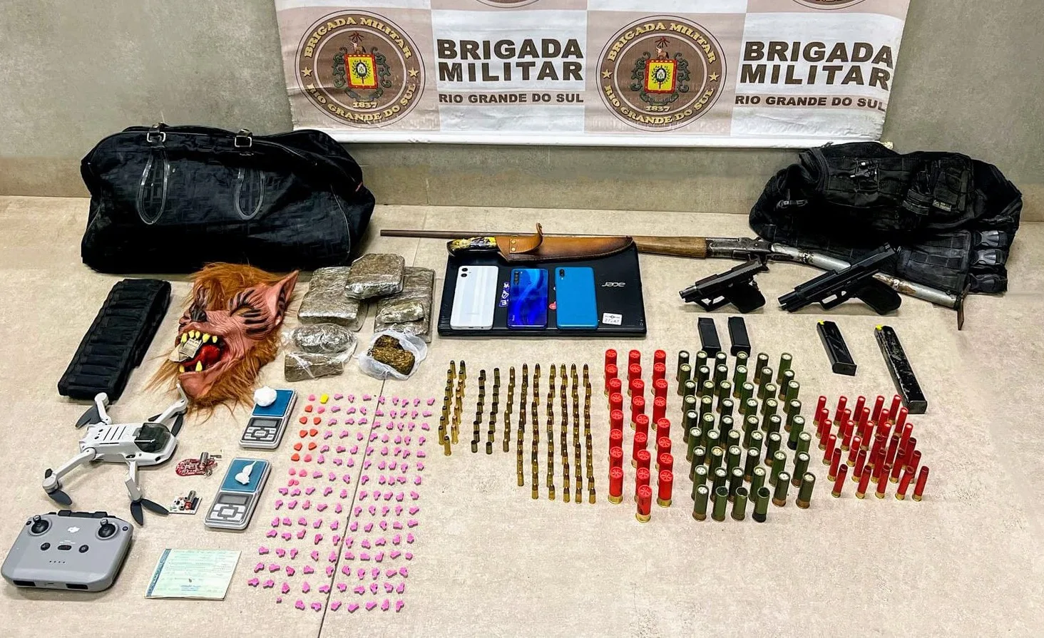 Além do veículo, foram apreendidas duas pistolas, uma espingarda artesanal calibre 36, quatro carregadores de pistola, 207 munições de diversos calibres, uma capa de colete balístico, 148 comprimidos de ecstasy, duas porções de crack e uma de cocaína.