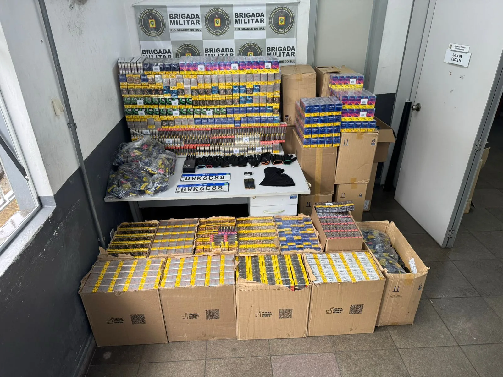 Um roubo de carga de cigarros ocorrido na manhã desta terça-feira (20), em Torres, terminou com a prisão de dois indivíduos e a recuperação do material, avaliado em aproximadamente R$ 100 mil, em Caxias do Sul. A ação foi resultado de uma operação integrada entre o 2º Batalhão de Policiamento de Áreas Turísticas (2º BPAT) e o 4º Batalhão de Polícia de Choque (4º BPChq), de Caxias do Sul.