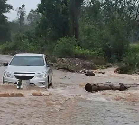 Um casal de idosos foi resgatado na manhã desta quinta-feira (29), após ficar ilhado dentro de um carro cercado por forte correnteza, em uma via próxima à ponte de entrada do município de Caraá, no Litoral Norte.