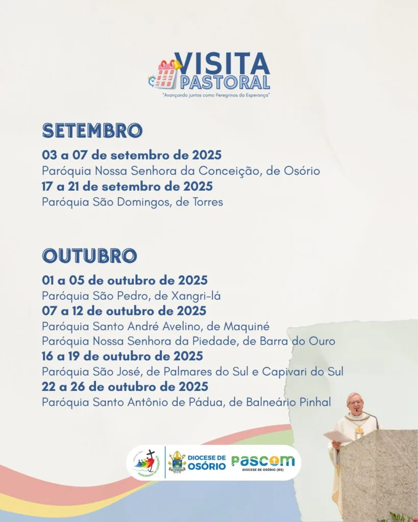 A Visita Pastoral seguirá pelas demais paróquias, com encerramento previsto para 30 de novembro de 2025. A última visita pastoral foi realizada em 2017, e esta nova jornada tem como objetivo estreitar laços com as comunidades locais, aprofundar o conhecimento da realidade diocesana e fortalecer a ação evangelizadora da Igreja.