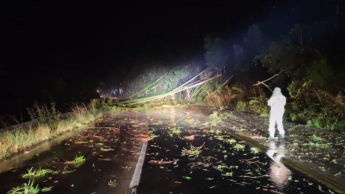 Um forte temporal atingiu diversas regiões do Rio Grande do Sul entre a noite da última quarta-feira (4) e a madrugada desta quinta (5), provocando transtornos e prejuízos significativos. No Litoral Norte, a ERS-486, conhecida como Rota do Sol, foi totalmente bloqueada entre os quilômetros 2 e 5, no trecho localizado em Itati. O motivo foi a combinação da queda de árvores e o acúmulo de até 50 centímetros de gelo sobre a pista, o que inviabilizou a passagem de veículos. Equipes da concessionária e da Defesa Civil seguem atuando na liberação da rodovia.