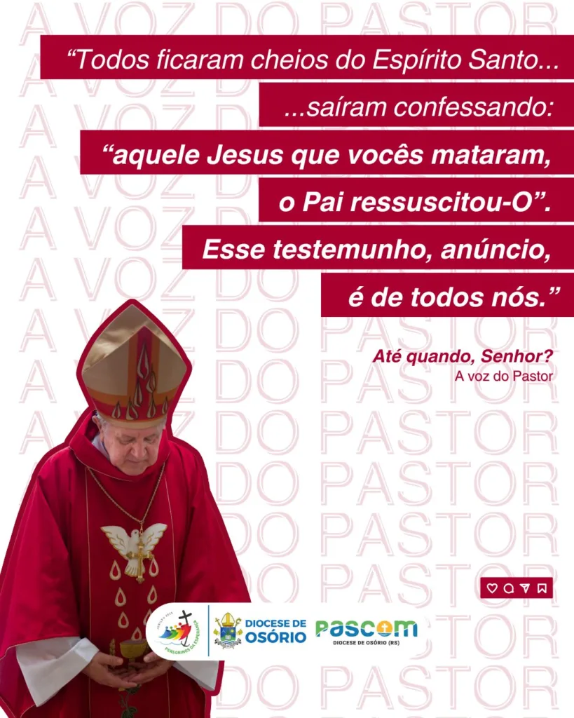 Em artigo intitulado “Até quando, Senhor?”, o bispo da Diocese de Osório, dom Jaime Pedro Kohl, reflete sobre o encerramento do Tempo Pascal com a Solenidade de Pentecostes e a missão confiada aos cristãos após a ressurreição de Jesus. Ele relembra o impacto do Espírito Santo sobre os discípulos e o nascimento da Igreja como comunidade missionária e corajosa.