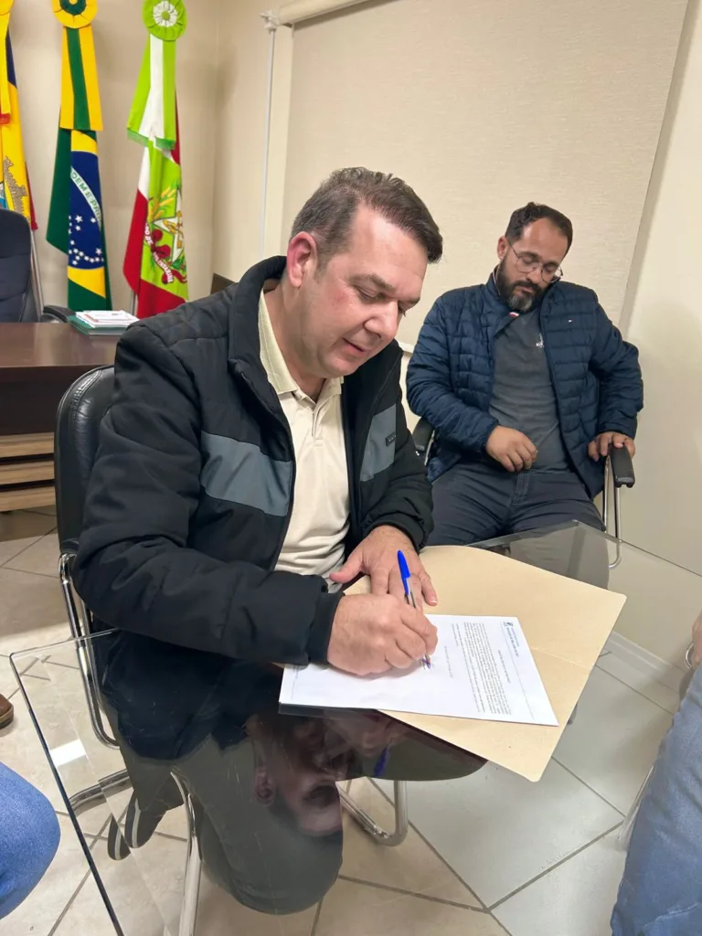 Na noite de terça-feira, dia 17 de junho, a Prefeitura de São João do Sul deu mais um importante passo para o fortalecimento das comunidades do interior. Em ato realizado no gabinete do prefeito Alex Bianchin, foi assinada a ordem de serviço para a construção do tão sonhado campo de futebol da localidade de Forquilhinha.