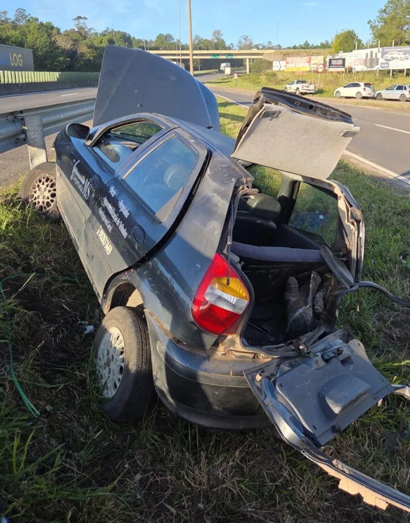 Um acidente de trânsito envolvendo dois veículos foi registrado na manhã desta quinta-feira (03), por volta das 8h, na marginal da BR-101, sentido Vila São João – Torres, no quilômetro 2 da via. De acordo com o comandante do Pelotão de Bombeiros Militar de Torres, tenente Rafael Alexandre de Souza, a colisão ocorreu entre uma caminhonete e um Fiat Palio. Uma das vítimas ficou presa às ferragens e precisou ser retirada com o auxílio da equipe dos bombeiros.