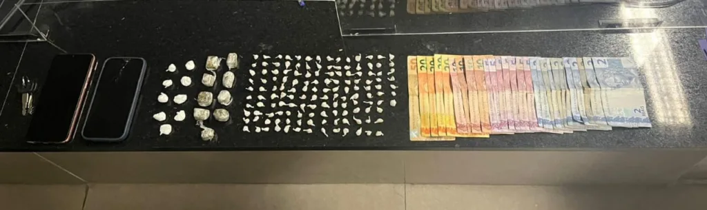 Com o homem, foram encontradas 137 pedras de crack, nove porções de cocaína, nove porções de maconha e dois celulares.