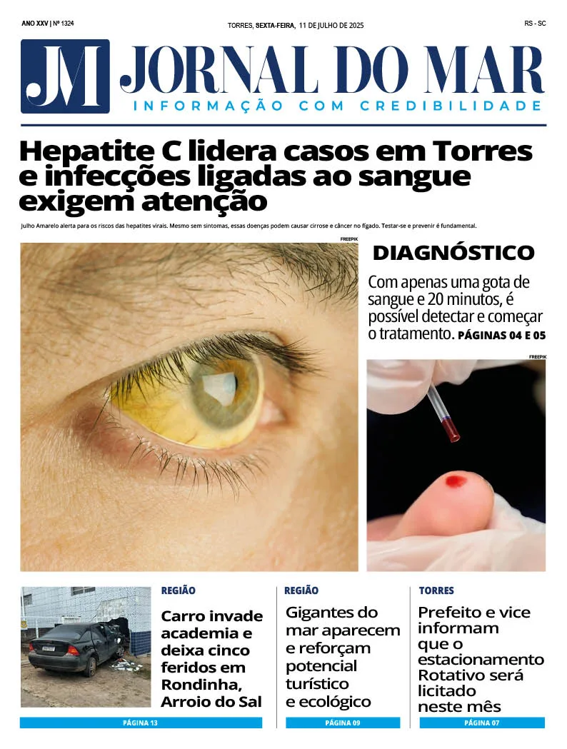 Durante o Julho Amarelo, o Jornal do Mar – www.jornaldomar.com.br –lança uma reportagem especial que revela dados preocupantes sobre a incidência das hepatites virais em Torres, com destaque para a hepatite C, que lidera os casos registrados na rede pública de saúde. A matéria mostra que, só em 2024, 15 moradores iniciaram tratamento para o vírus HCV, todos com cura, mas o perfil dos infectados acende um alerta. A maioria são homens entre 50 e 59 anos, com histórico de exposição a sangue contaminado.
