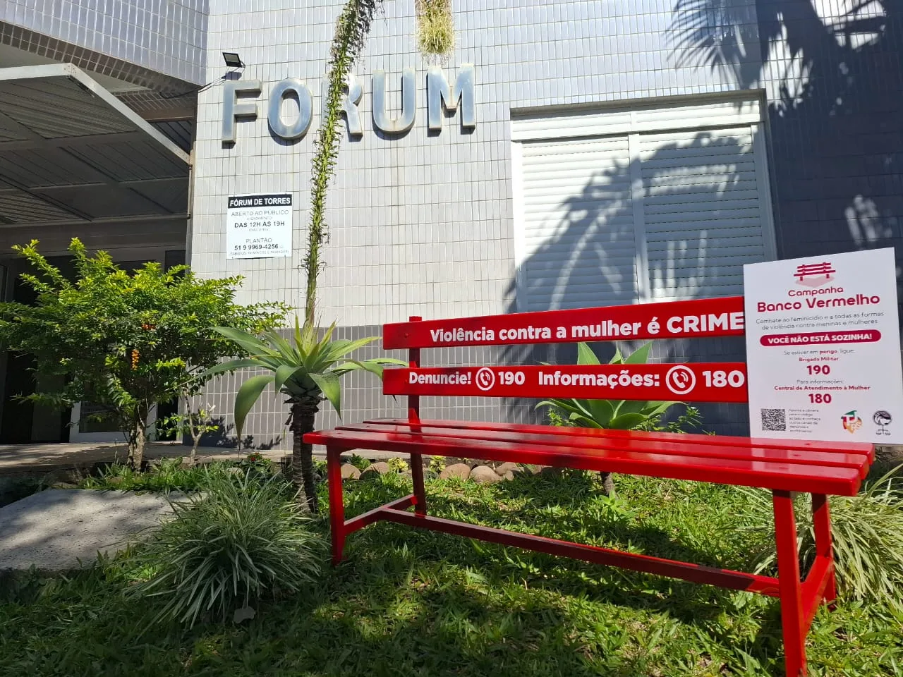 A Comarca de Torres aderiu à Campanha Banco Vermelho, iniciativa internacional de enfrentamento à violência contra a mulher. A instalação do banco vermelho, símbolo de alerta e conscientização, ocorreu na última semana, na entrada do Foro da cidade.