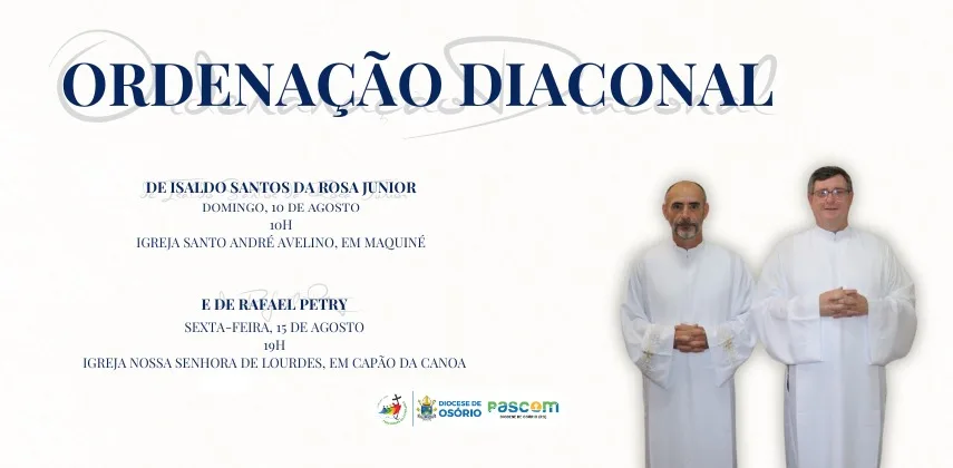 Com essas ordenações, a Diocese de Osório passará a contar com oito diáconos permanentes em atuação, fortalecendo a vida eclesial em paróquias como Tramandaí, Torres, Três Cachoeiras, Capão da Canoa, Xangri-Lá, Imbé e Maquiné.