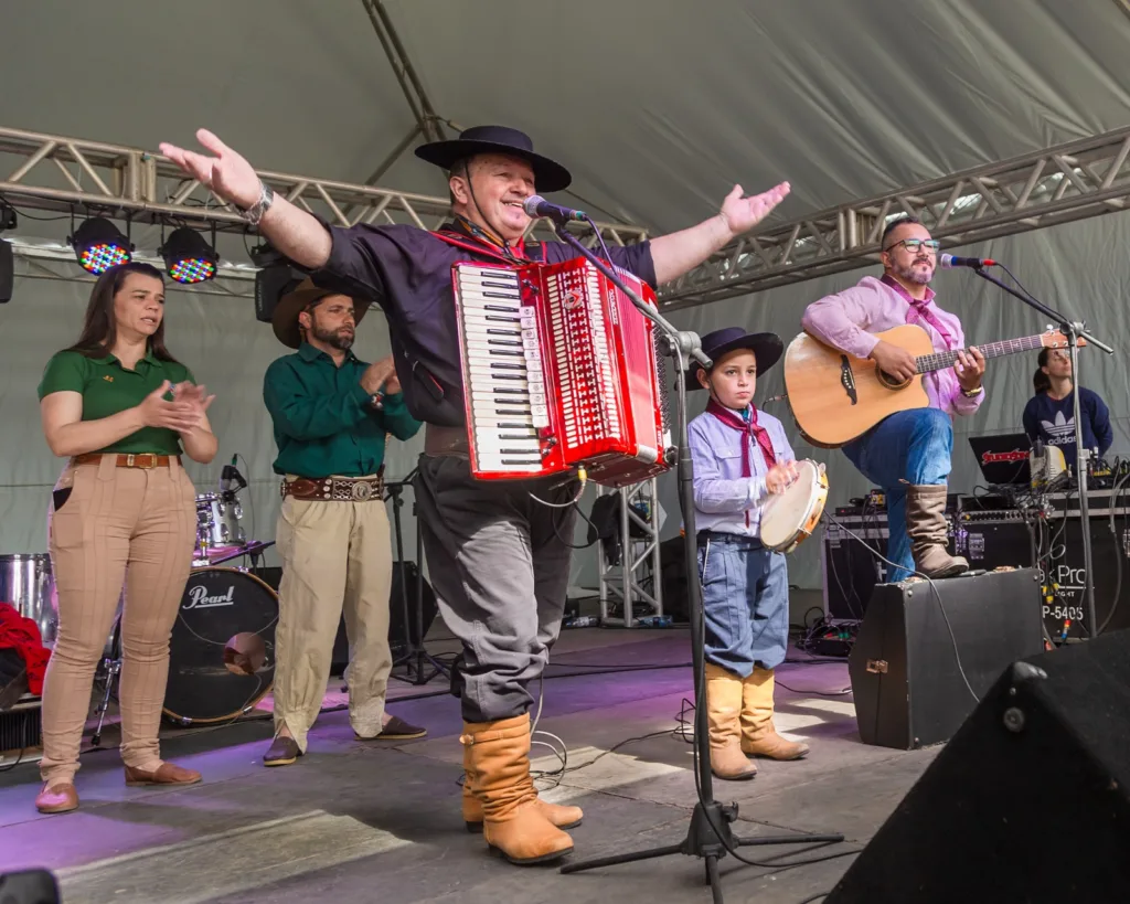 No domingo, 14, o público poderá acompanhar o Concurso Assador Farroupilha, com início às 10h, que reunirá talentos da região em uma disputa com costela e carne sem osso como itens obrigatórios. Às 11h, será celebrada a Missa Crioula pelo padre Leonir, com participação do Coral Antônio Joaquim Pereira. À tarde, às 15h, ocorre o encontro da Terceira Idade Gaudéria, com show de Sassá. A noite encerra com baile da banda Bem Baileiro, às 22h.