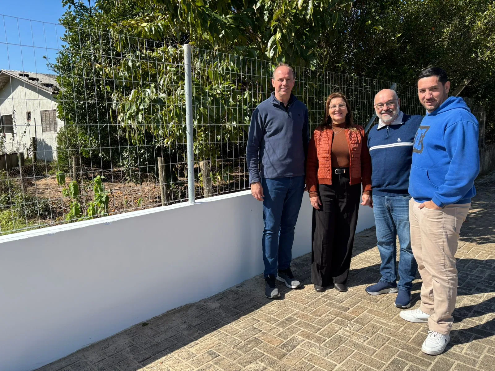 Na tarde de quinta-feira, 31 de julho, o prefeito de Torres, Delci Dimer, acompanhado do vice-prefeito André Pozzi, da secretária municipal de Educação, Rosa Lummertz, e do presidente da Câmara de Vereadores, Igor Beretta, visitou a Escola Manoel Ferreira Porto, no bairro Campo Bonito, para conferir a conclusão da obra do muro da instituição. A construção era um antigo pleito da comunidade, já que a escola, localizada próxima à BR-101, ficava sem proteção adequada, colocando em risco a segurança de crianças e adolescentes.