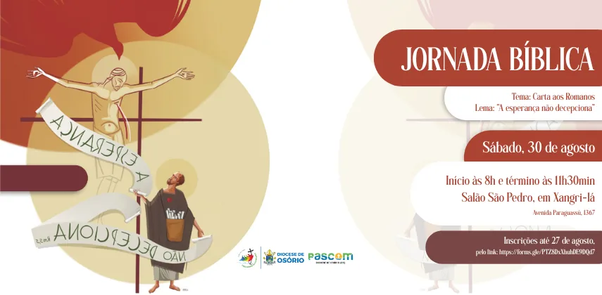 Em sintonia com o Jubileu Peregrinos de Esperança, a Diocese de Osório, por meio da Comissão Diocesana para a Animação Bíblico-Catequética (SAB-C), promove a Jornada Bíblica 2025 no contexto do Mês da Bíblia, com o objetivo de aprofundar a vivência da fé por meio do estudo da Carta aos Romanos.