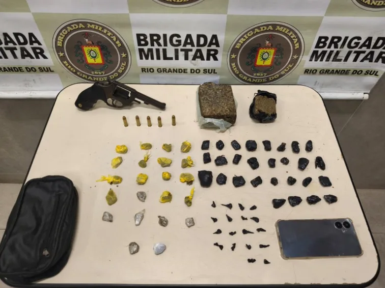 Já em Capão da Canoa, no bairro Capão Novo, uma equipe da Força Tática prendeu um homem de 26 anos por porte ilegal de arma e tráfico de drogas. Com ele, os policiais encontraram um revólver calibre .38 com cinco munições, 52 porções de maconha somando 522 gramas, 18 porções de crack e um celular. O suspeito também tinha passagens anteriores por homicídio, tráfico e vias de fato.
