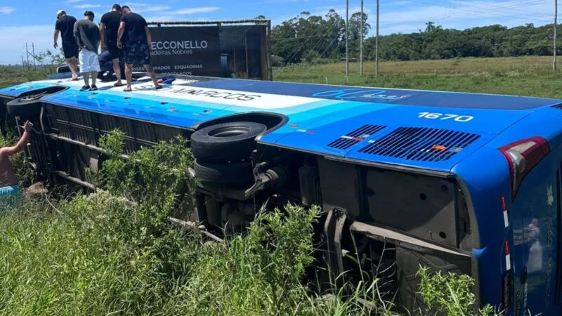 No momento do acidente, havia 32 passageiros no coletivo. Cinco pessoas sofreram lesões leves e foram encaminhadas ao hospital para avaliação e atendimento médico. Apesar do sinistro, o trânsito no local seguiu fluindo normalmente, sem necessidade de bloqueios na rodovia.