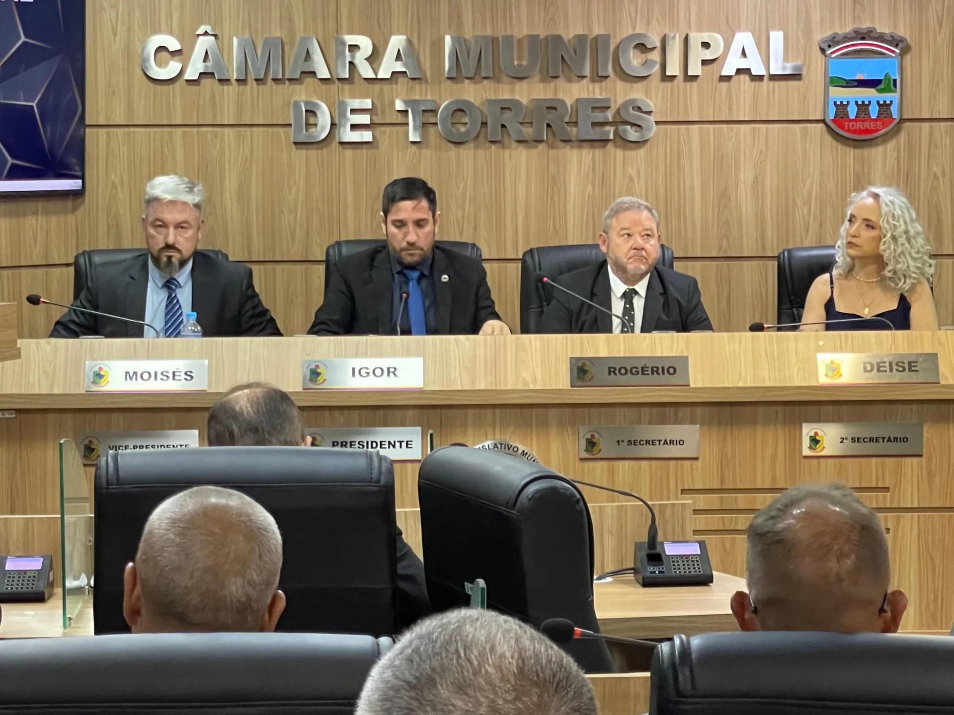 A Câmara de Vereadores de Torres realizou nesta segunda-feira (5) a posse da nova mesa diretora e a recondução do vereador Igor Beretta à presidência do Legislativo para o ano de 2026. Reeleito após um processo construído ao longo de 2025, Beretta destacou o momento como histórico, já que, segundo ele, há 35 anos não ocorria a reeleição de um presidente da Câmara no município.