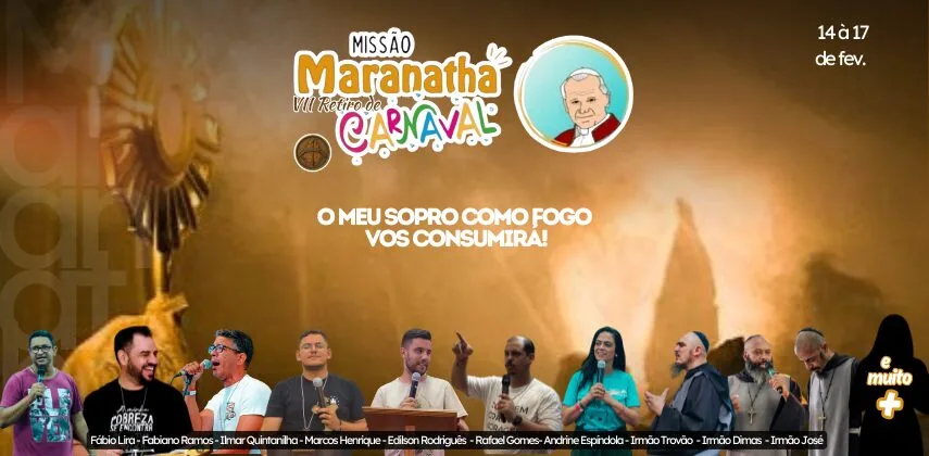 A programação inicia no sábado, dia 14, com acolhida às 9h, e segue até a terça-feira de Carnaval, dia 17, sendo encerrada com a celebração da Santa Missa às 14h. Ao longo dos dias, os participantes vivenciarão momentos de pregação, adoração, louvor, partilhas e celebrações.