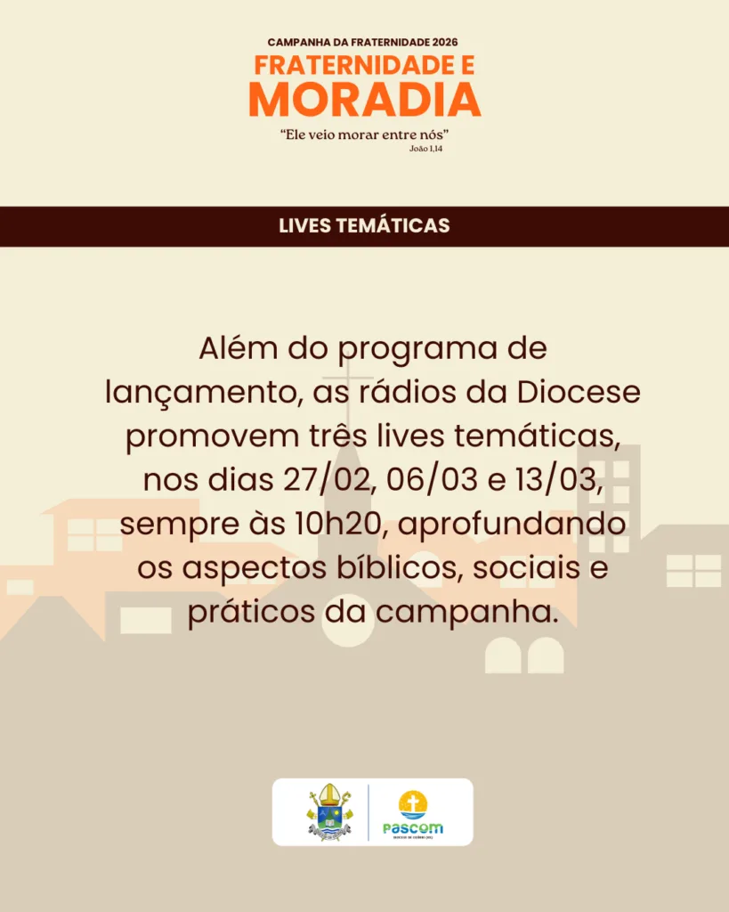 As lives integram o esforço conjunto da Diocese e de seus veículos de comunicação para ampliar o debate, promover conscientização e fortalecer o compromisso cristão com a dignidade humana.