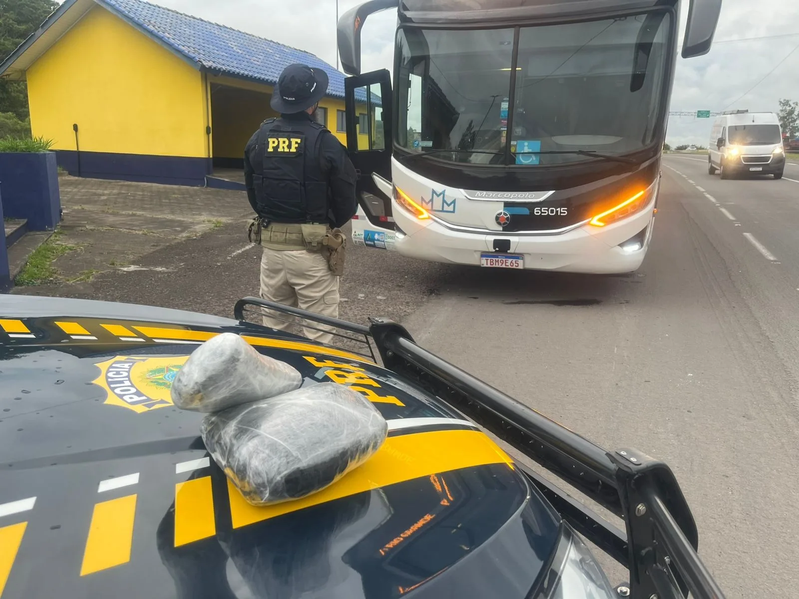 Na tarde desta quinta-feira (12), a Polícia Rodoviária Federal prendeu um homem com 3,6 quilos de haxixe durante a fiscalização de um ônibus. A abordagem aconteceu na BR-101, em Torres.