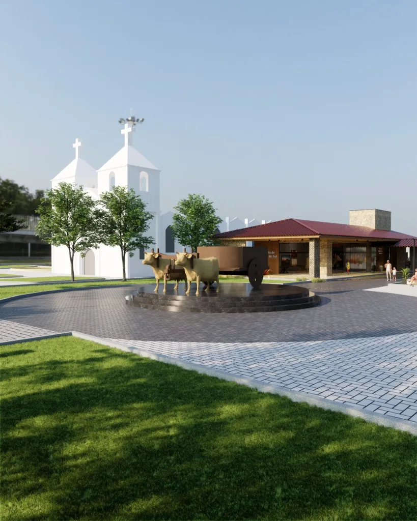 Entre os grandes diferenciais da nova praça está a construção do Museu do Carro de Boi. A escolha do local não foi por acaso. A Administração pensou estrategicamente no fortalecimento do turismo, valorizando um dos maiores símbolos da história do município, afinal, somos a Capital Catarinense do Carro de Boi. Já o monumento do carro de boi será realocado e receberá o destaque que merece, tornando-se ainda mais imponente e visível para quem passa pela cidade.