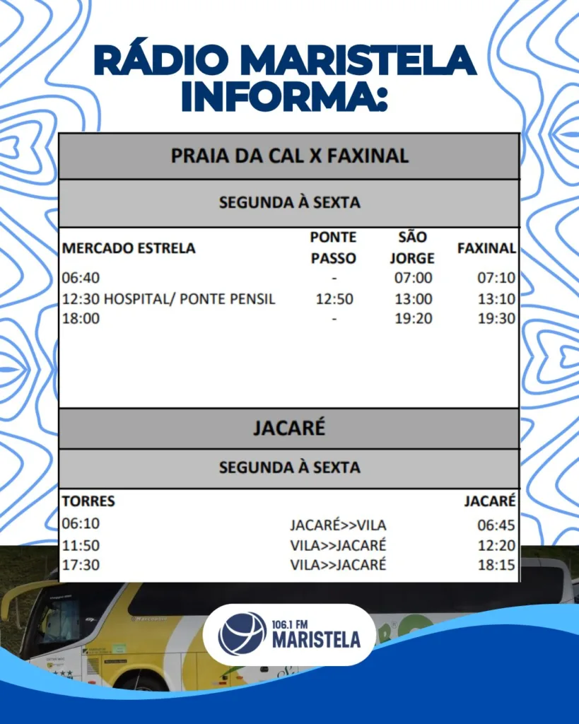 A nova tabela emergencial passou a vigorar no dia 14 de março e prevê uma redução significativa no número de horários e viagens em diversas linhas que atendem bairros e localidades do município, como Faxinal, Jacaré, Paraíso, Águas Claras e Vila São João. A alteração afeta tanto dias úteis quanto finais de semana, com menos opções de deslocamento ao longo do dia.