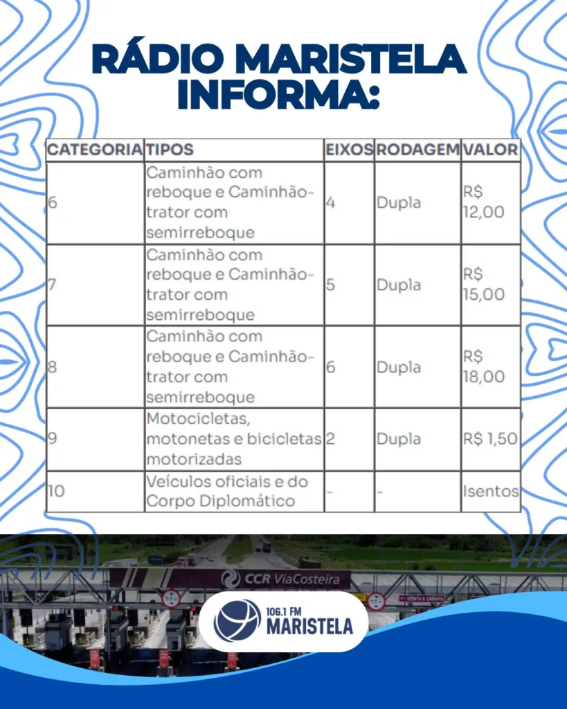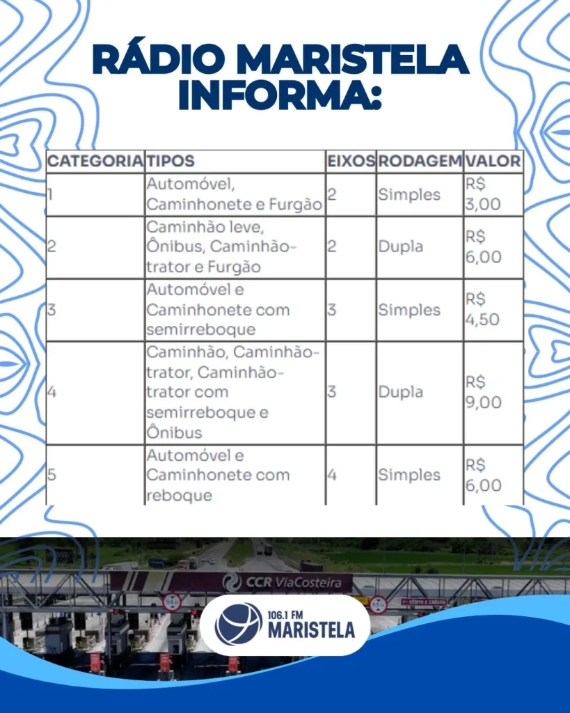 Com a mudança, a tarifa básica nas quatro praças administradas pela concessionária responsável pela rodovia passa a ser de R$ 3. O reajuste anual está previsto em contrato e considera fatores como a inflação, medida pelo IPCA, além de eventuais reequilíbrios contratuais.