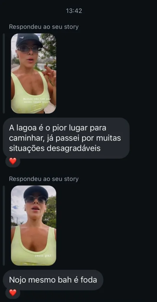 O relato também foi compartilhado por Renata Lopes em suas redes sociais, onde recebeu apoio de seguidores. Muitos internautas aproveitaram a publicação para relatar experiências semelhantes e apontaram o entorno da Lagoa do Violão como um dos locais mais inseguros da cidade para a prática de exercícios, especialmente em determinados horários, reforçando a preocupação com a segurança na região.