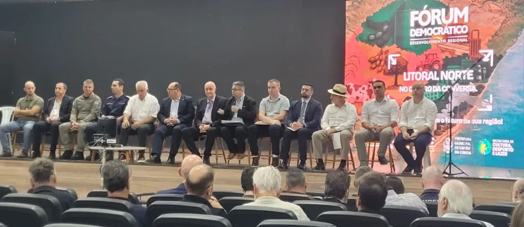 Já o deputado Luciano Silveira enfatizou que o fórum representa um momento estratégico para o Litoral Norte, especialmente diante do crescimento populacional recente. Ele apontou a necessidade de investimentos em infraestrutura, educação e saúde. “Os serviços públicos estão nos municípios, e precisamos fortalecer essa base. O desenvolvimento do porto e outras obras exigem planejamento para garantir qualidade de vida à população”, afirmou.