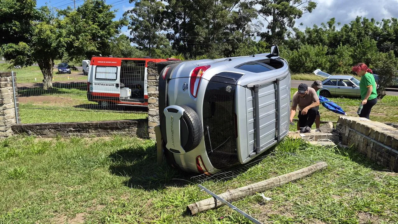 Um acidente de trânsito chamou a atenção de quem passava pela Estrada do Mar, em Torres, no início da tarde desta terça-feira (31). Um veículo que seguia no sentido Arroio do Sal – Torres bateu contra o muro e na sequencia capotou, no terreno do castelo, localizado no bairro Itapeva.
