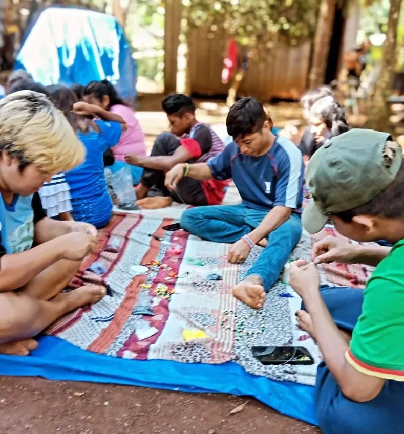 Iana Scopel, da Associação de Estudos e Projetos com Povos Indígenas e Minoritários (Aepim), relatou que foram confeccionadas pulseiras com grafismos e colares com sementes tradicionais, como a Lágrima-de-Nossa-Senhora e a semente da palmeira juçara. Além das matérias-primas naturais, as miçangas são bastante utilizadas na composição dos desenhos. Na cultura Guarani, cada grafismo expressa um significado ancestral, transmitido de geração para geração.