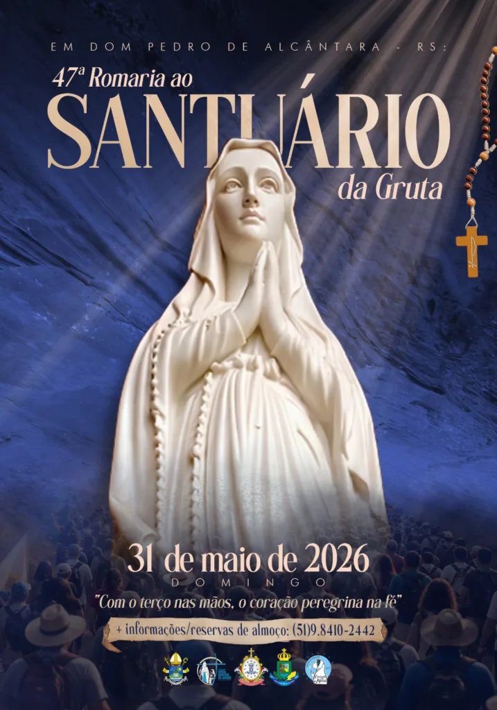 O Santuário Diocesano da Gruta de Nossa Senhora de Lourdes, em Dom Pedro de Alcântara, lançou oficialmente no último domingo, 5 de abril, o calendário das Romarias 2026, consolidando o espaço como um dos principais destinos de fé e peregrinação do Litoral Norte gaúcho. A programação prevê três grandes eventos religiosos entre maio e junho, reunindo peregrinos, ciclistas e cavalarianos em momentos de espiritualidade, convivência comunitária e valorização da cultura regional.