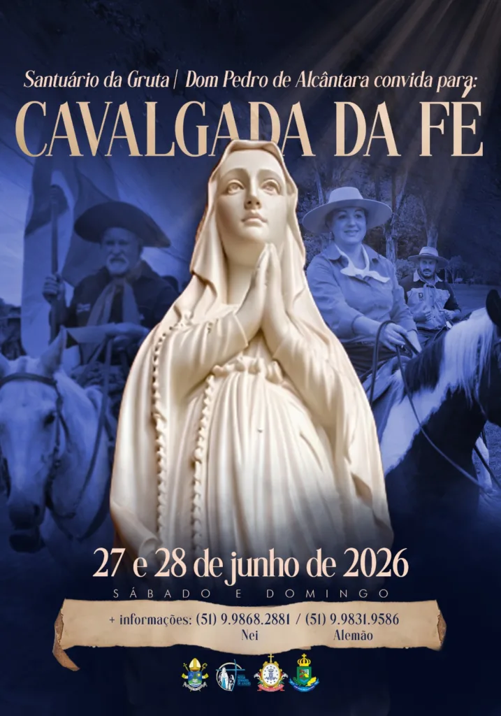 Encerrando o calendário, nos dias 27 e 28 de junho, será realizada a Cavalgada da Fé, evento que integra espiritualidade, tradição gaúcha e confraternização comunitária.