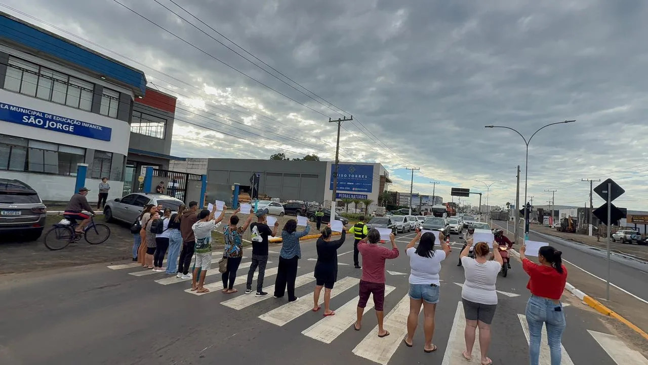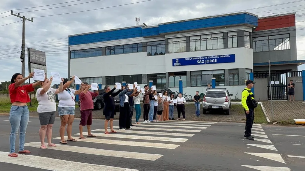 Uma manifestação realizada na manhã desta segunda-feira, 13, mobilizou pais e responsáveis em frente à Escola Municipal de Educação Infantil (EMEI) São Jorge, localizada na Av. Castelo Branco, 2205, Engenho Velho, em Torres. O grupo reivindica mais segurança no trânsito para a travessia das crianças, especialmente nos horários de entrada e saída escolar.