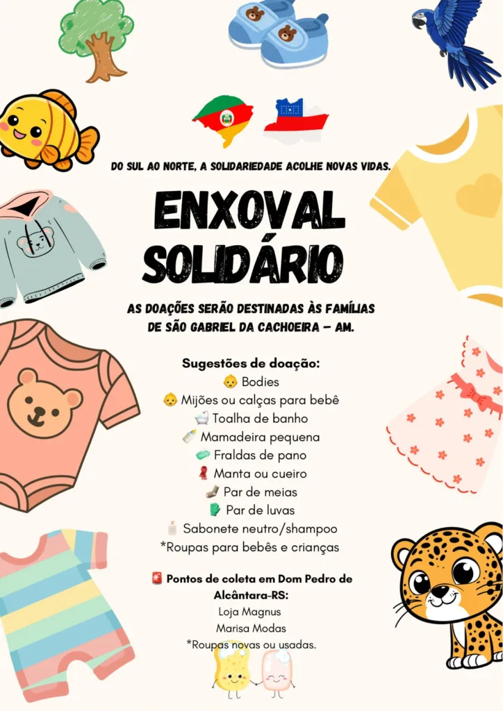 Do lado de cá, a mobilização se intensifica e ganha força em toda a região. Em Dom Pedro de Alcântara, pontos de coleta foram organizados em estabelecimentos locais, como a Loja Magnus e Marisa Modas. Em Torres, as doações podem ser entregues na secretaria da Paróquia São Domingos, na Rua Firmino Paim, 400, com identificação de que a doação é destinada à Campanha Enxoval Solidário. A proposta é arrecadar itens básicos para recém-nascidos e crianças, como roupas, mantas, fraldas, toalhas e produtos de higiene.
