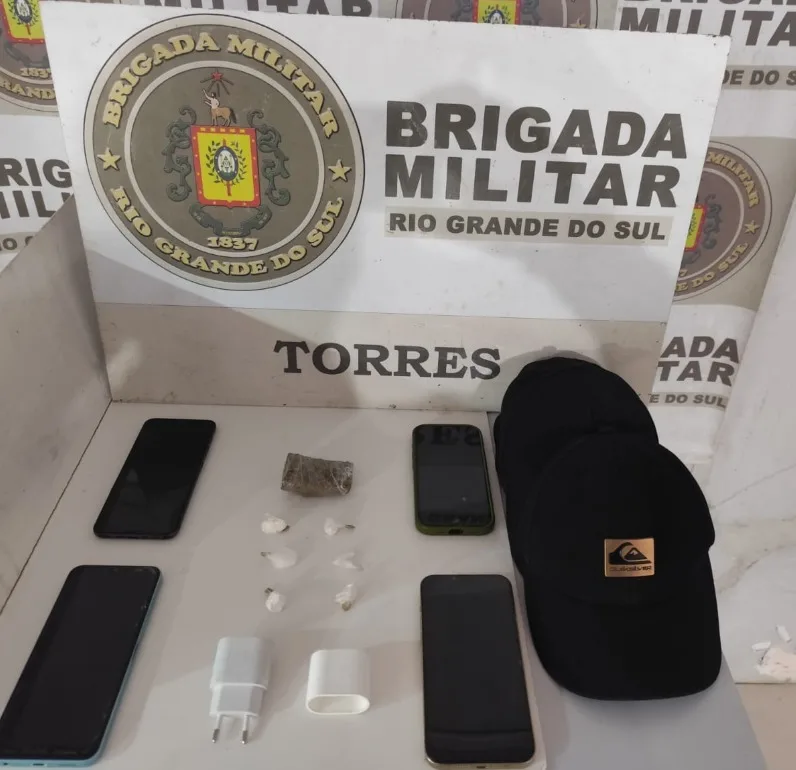 Em outra ação, durante patrulhamento na área central da cidade, dois homens foram abordados. Com a dupla, foram localizadas seis porções de cocaína, uma porção de maconha e quatro aparelhos celulares.