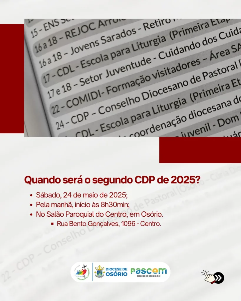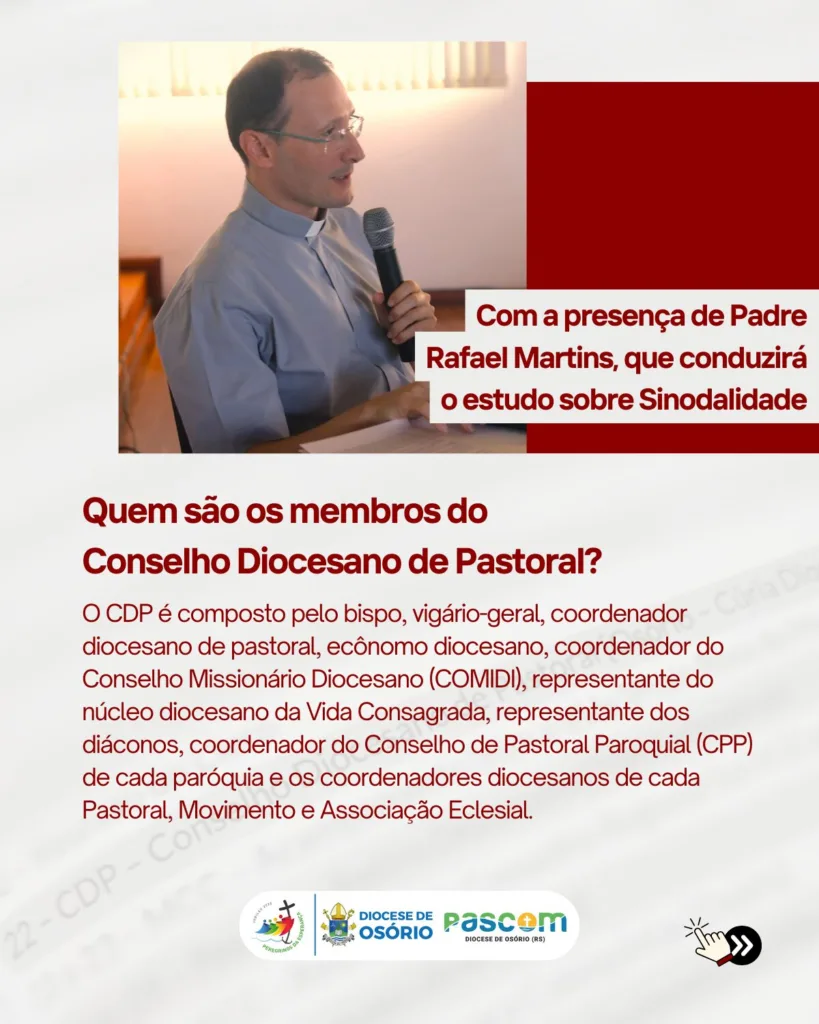O tema, apresentado pelo bispo da Diocese de Osório, dom Jaime Pedro Kohl, destaca que a alegria cristã não se confunde com euforia passageira, mas brota da confiança em Deus e da presença do Reino já entre nós. À luz da mensagem de João Batista e dos sinais revelados por Jesus, o artigo recorda que essa alegria permanece mesmo nas dificuldades e é fruto do Espírito Santo. Neste final de semana, os fiéis são chamados a expressar essa alegria também por meio da participação na Coleta para a Evangelização, gesto de fé e compromisso com a missão da Igreja.