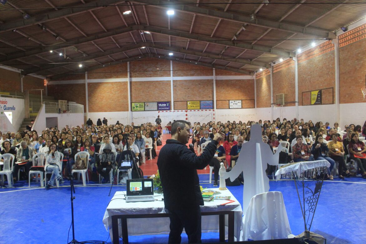 Durante o encontro estiveram presentes contribuindo com as partilhas o coordenador diocesano de Pastoral e referencial para a Liturgia na Diocese, Pe. Marlon Lopes, falando sobre o ser batizado e enviado; o reitor do Seminário da Diocese, Seminário Rainha dos Apóstolos, e professor na PUCRS, Pe. Tiago Gomes, falando sobre missão, sinodalidade e os desafios de evangelizar nos dias de hoje; as leigas da Paróquia São José de Três Cachoeiras, Jaqueline Oliveira e Júlia Toffoli, falando sobre as responsabilidades com os dons que Deus dá a cada um, assim como, aos jovens da atualidade; e o bispo da Diocese de Osório, dom Jaime Pedro Kohl, conversando com os participantes sobre o tema do Ano Vocacional, “Vocação: Graça e Missão”.