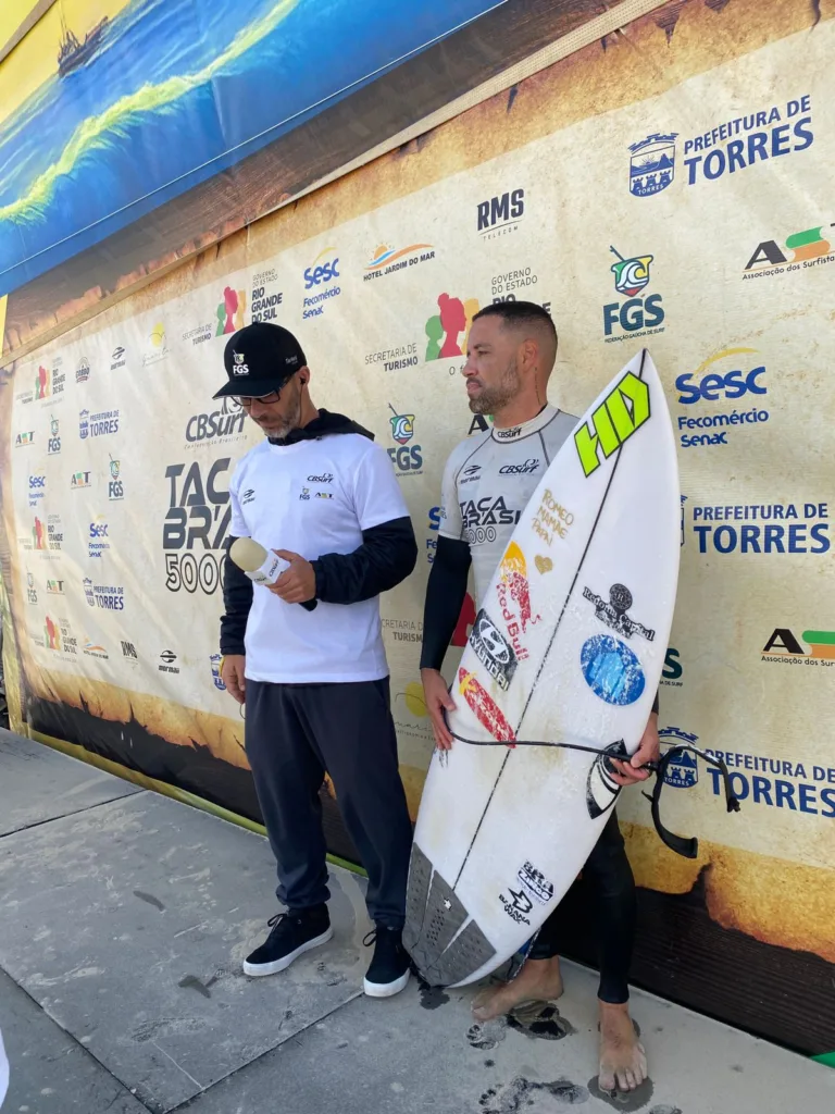 “Tá um pouco de vento, mais do que o normal, mas as ondas estão num tamanho bom, dá pra ter bons desempenhos. Moro em Criciúma, pertinho daqui, então tô dormindo em casa, isso é ótimo. Quero fazer o máximo de baterias possível, tô bem fisicamente e pronto pra seguir”, contou o campeão mundial.