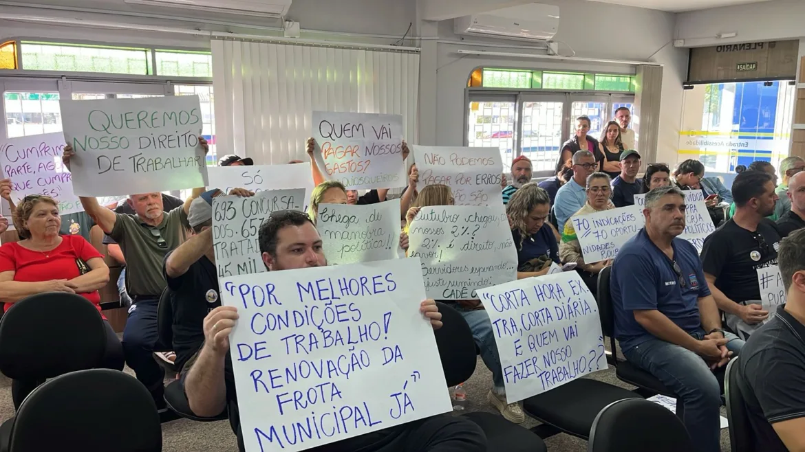 A mobilização ocorre um dia após a 31ª Sessão Ordinária da Câmara de Vereadores, realizada na segunda-feira (29), que contou com forte presença de servidores no plenário. Muitos levaram cartazes com frases como: “Por melhores condições de trabalho. Renovação da frota municipal já”, “Corta hora extra, corta diária. Quem vai fazer o nosso trabalho?” “Outubro chegou. Cadê os nossos 2%? 2% é direito e não favor”, “Servidores esperando e ajuste sumindo”. As manifestações reforçaram a pressão sobre os parlamentares e a cobrança por respostas do Executivo.