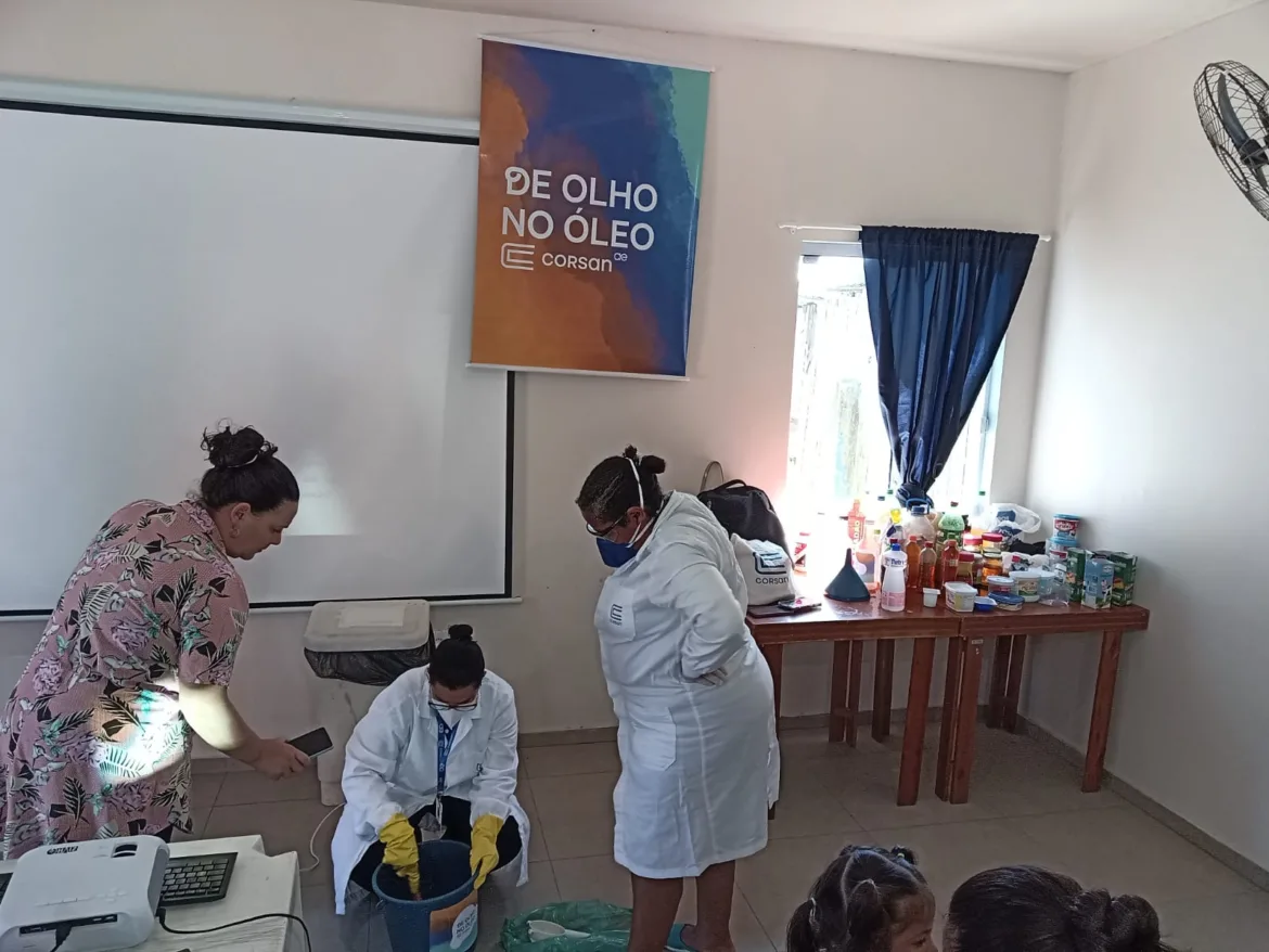 A Corsan realiza o programa De Olho no Óleo em parceria com o Centro de Referência da Assistência Social em Tramandaí, na sede da instituição, no bairro São Francisco II. O objetivo da iniciativa é promover a conscientização sobre o uso correto das redes de esgoto e incentivar o reuso do óleo usado de cozinha, bem como o seu descarte correto.