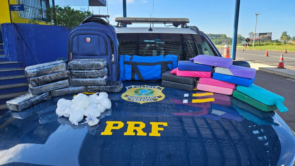 Durante a fiscalização em duas bagagens de mão, foram localizados 11 pacotes e 50 invólucros com cocaína que totalizaram mais de 12 kg do entorpecente e nove pacotes de pasta base, totalizando mais de nove kg de entorpecente. No total foram 22 kg de entorpecentes.