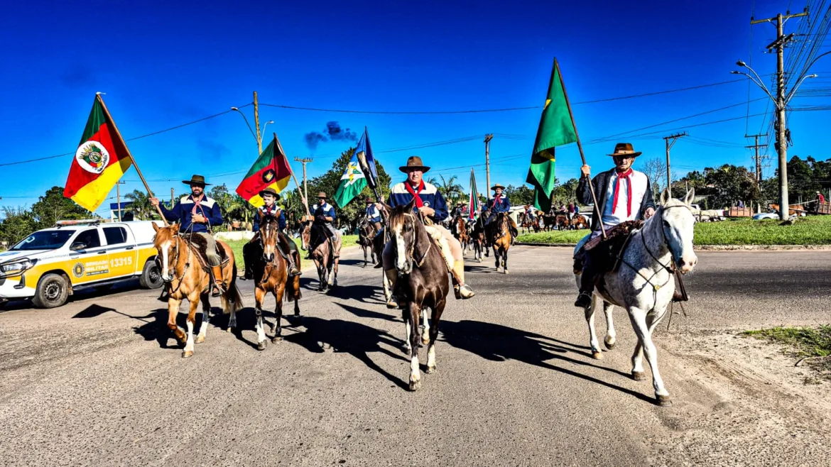 O Parque do Balonismo, em Torres, está tomado pelo clima da Semana Farroupilha. Entre as atrações, o piquete do DTG da Igreja São Domingos se destaca ao receber centenas de crianças da rede municipal de ensino, em um circuito cultural e campeiro que apresenta de forma prática a tradição gaúcha.