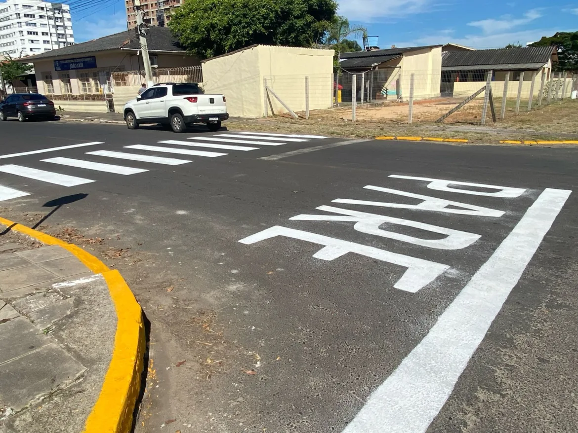 Os trabalhos iniciaram cedo, por volta das 7h da manhã as equipes já estavam os serviços, que começaram com pintura das faixas de pedestre e da sinalização de PARE nas esquinas com as ruas Manoel Fortunato de Souza e General Firmino Paim. Esta última em frente à Escola Municipal de Educação Infantil (EMEI) João XXIII.