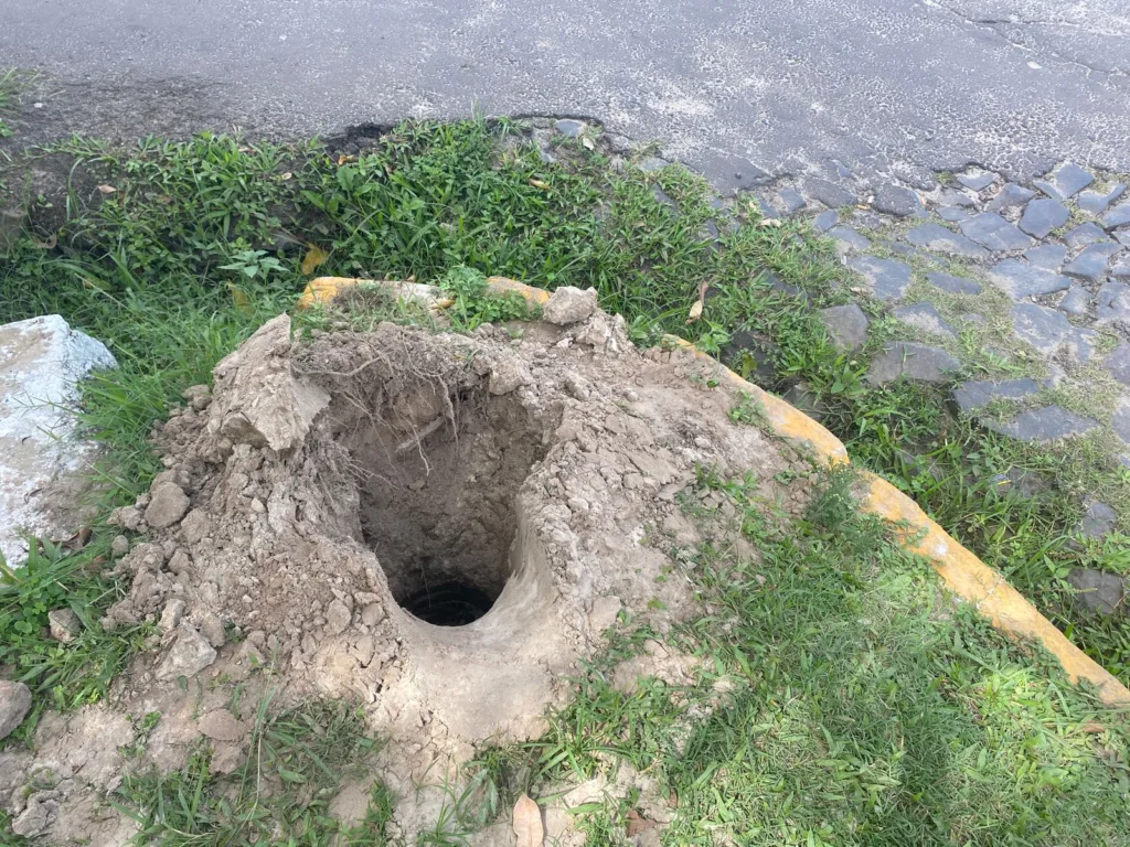 No trecho, foi constatada a presença de muitos buracos, desníveis ao longo da pista e acúmulo de água, o que dificulta o tráfego de veículos e pedestres. Segundo moradores, os problemas são recorrentes e se agravam em períodos de chuva, aumentando o risco de acidentes e danos aos veículos que circulam pela rua.
