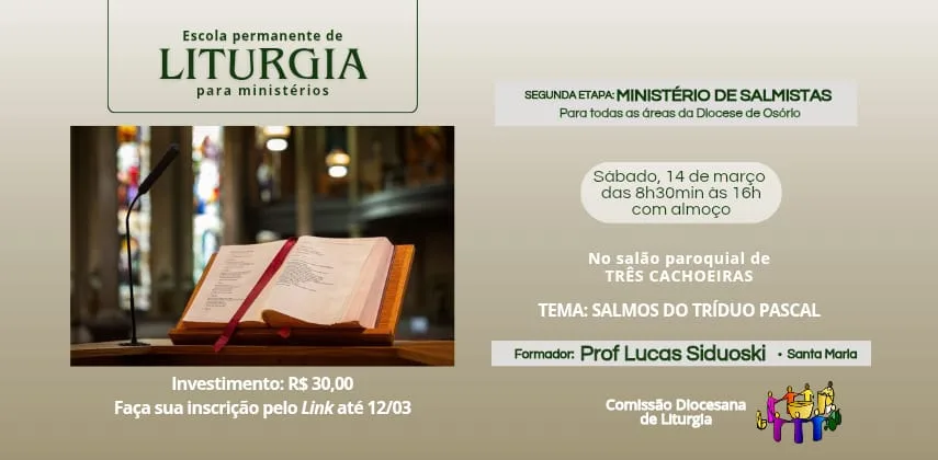 O material já está disponível nas paróquias da Diocese de Osório e pode ser encontrado nas livrarias diocesanas, secretarias paroquiais e centros diocesanos de pastoral.